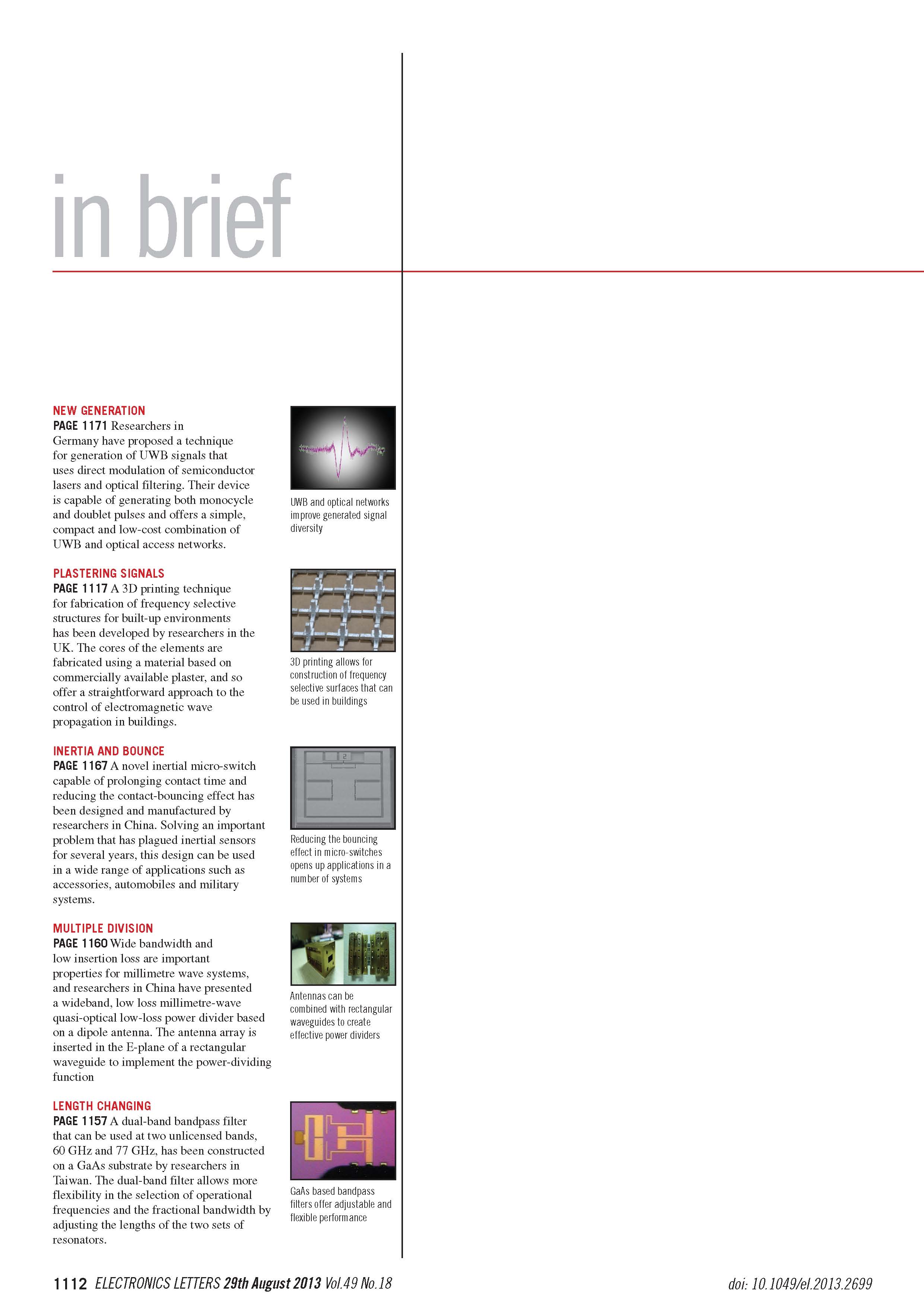 Congratulation!!2013年發表的Electronics Letters被選作為 vol. 49, Issue 18 In brief 之一
